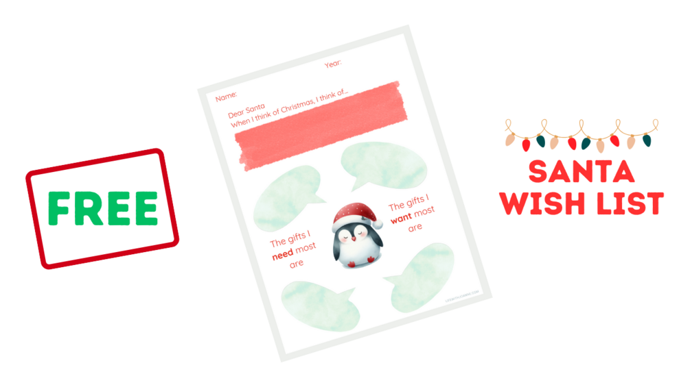 With Christmas right around the corner, use this adorable printable wish list for Santa. Featuring a jolly, festive penguin, it includes four spaces for your child to list what they need and want. There is also room for them to write a sentence about what Christmas means to them.